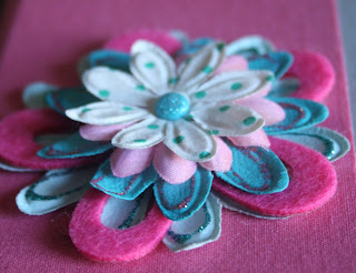 - Decorate the lower left corner with felt flowers and brad.